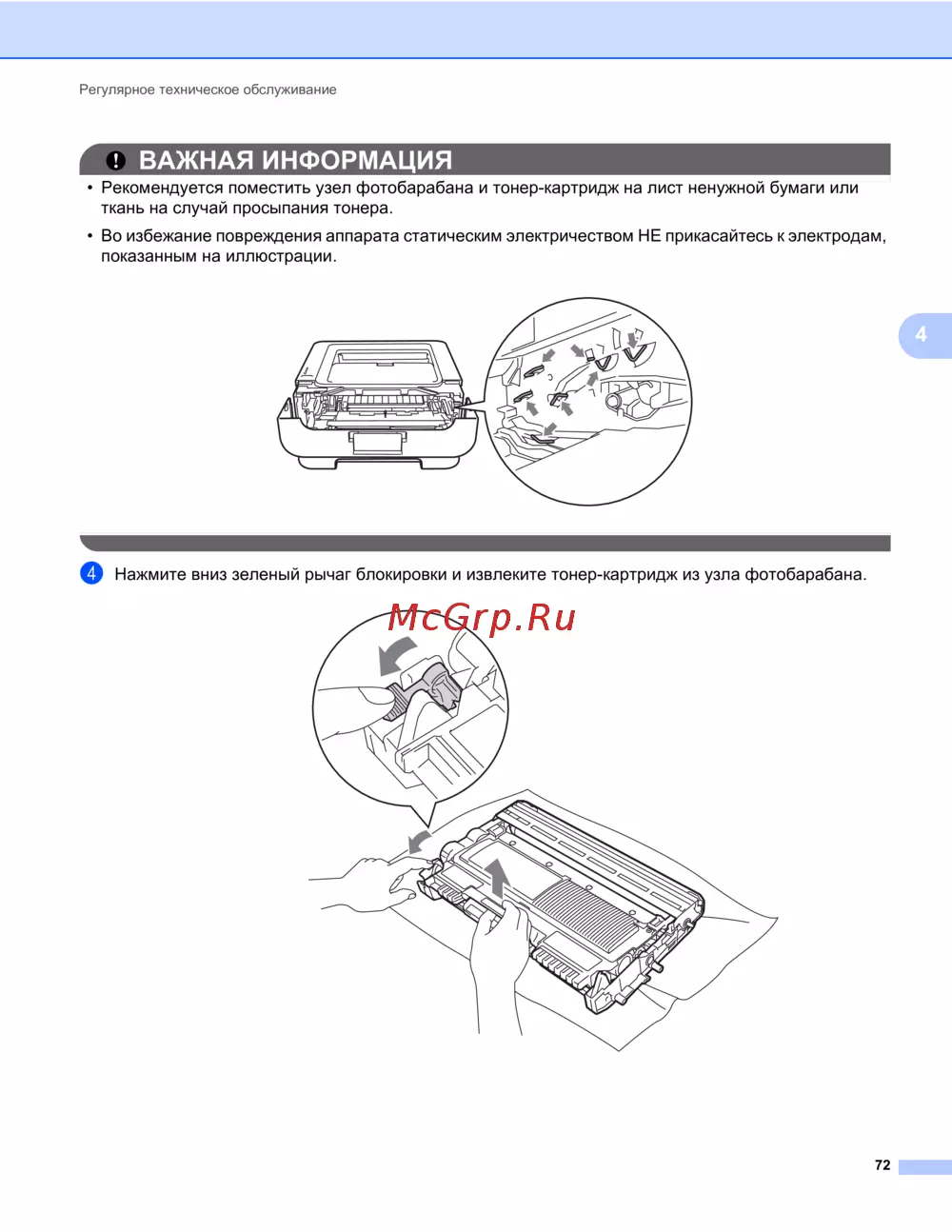 • Рекомендуется поместить узел фотобарабана и тонер-картридж на лист ненужной бумаги или