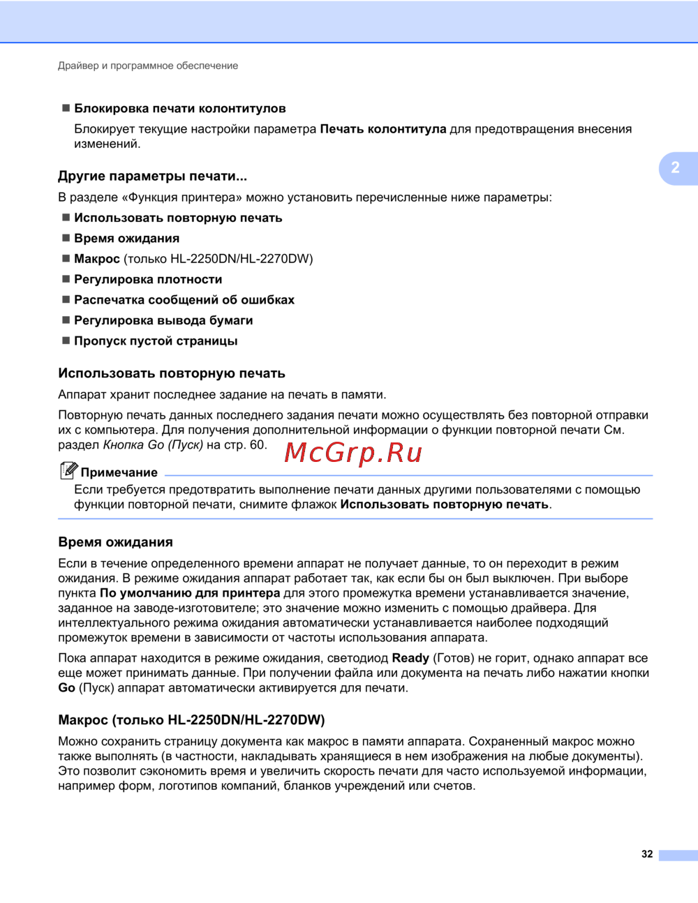 Макрос (только HL-2250DN/HL-2270DW) 2