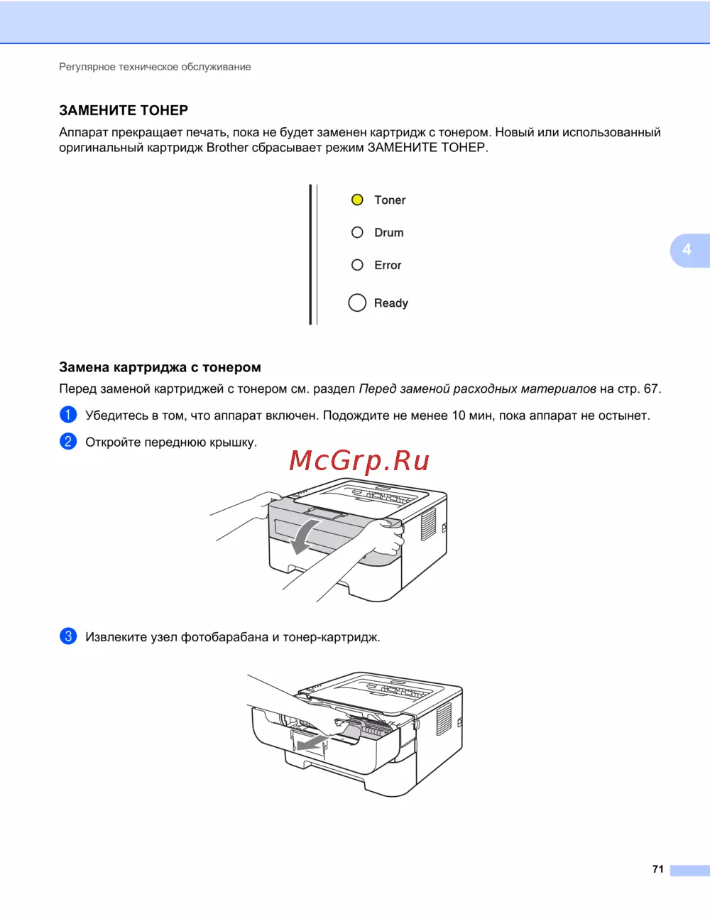 ЗАМЕНИТЕ ТОНЕР 4