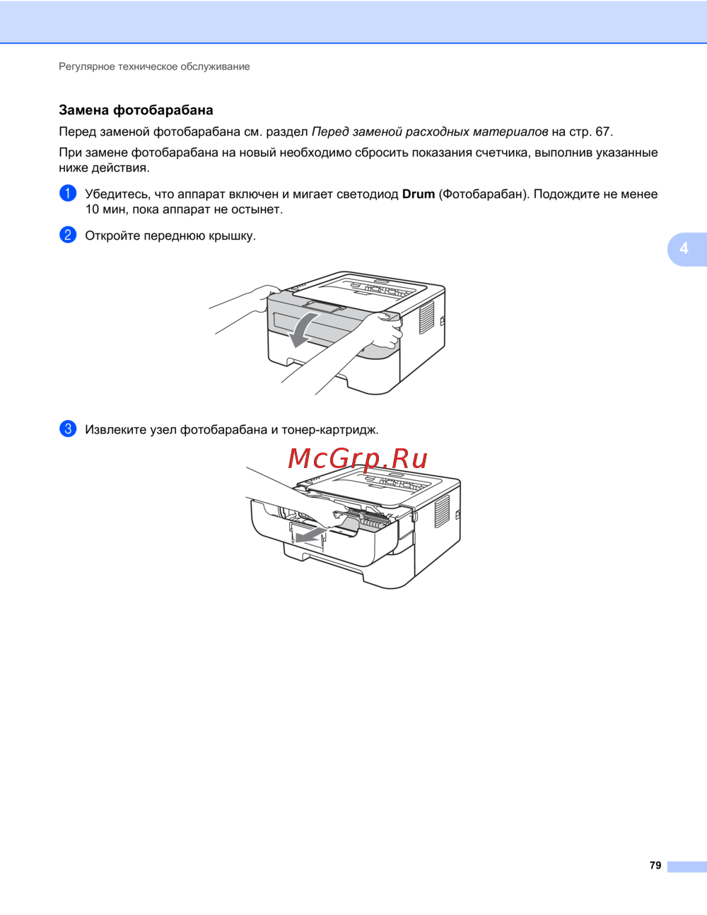 Перед заменой фотобарабана см. раздел Перед заменой расходных материалов на стр. 67.