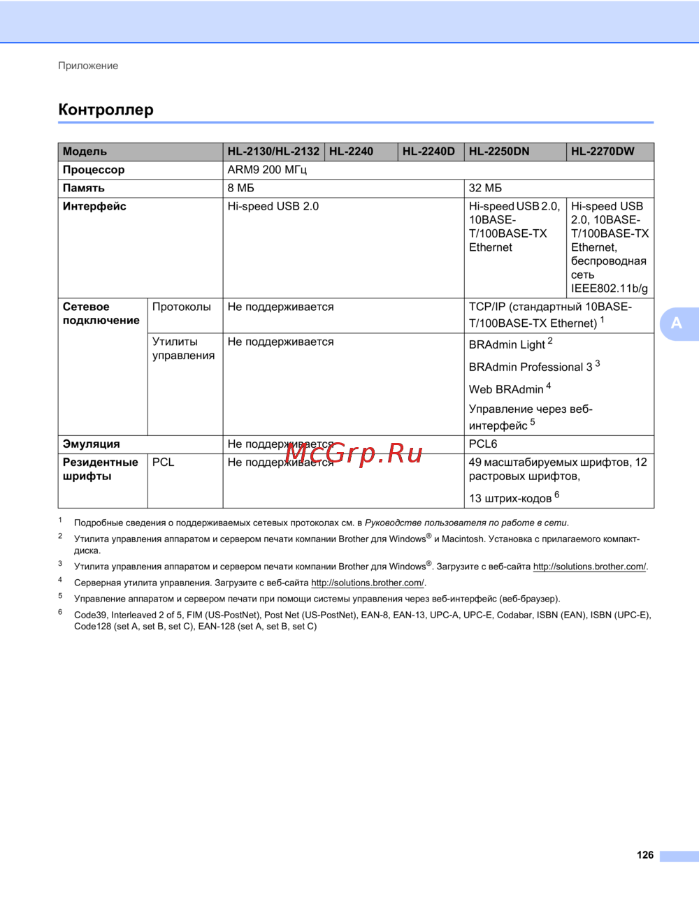 Brother HL-2250DNR — подробная информация о сетевых протоколах и утилитах управления [130/154]