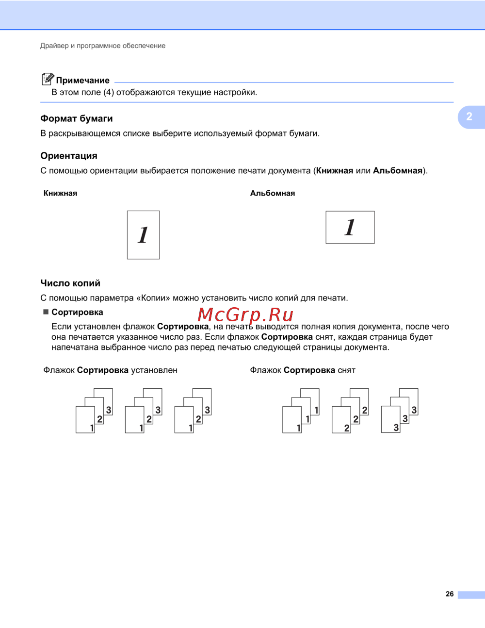 Brother HL-2250DNR — настройки печати: форматы, ориентация и количество копий [30/154]