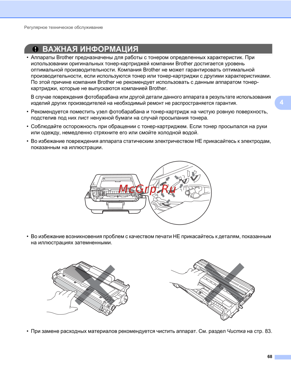 По этой причине компания Brother не рекомендует использовать с данным аппаратом тонер-