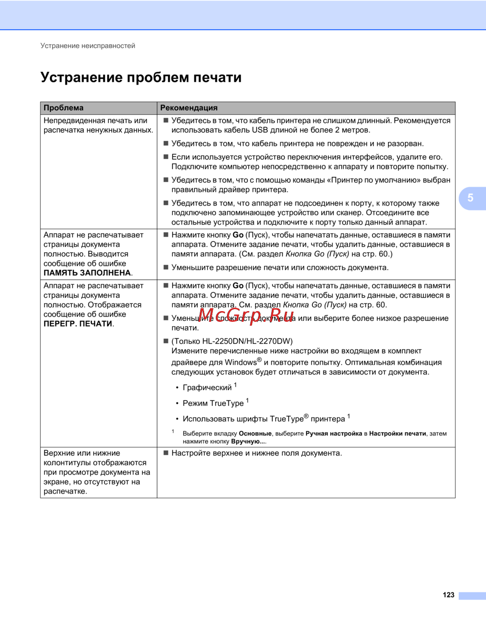 - Устранение проблем печати p.127