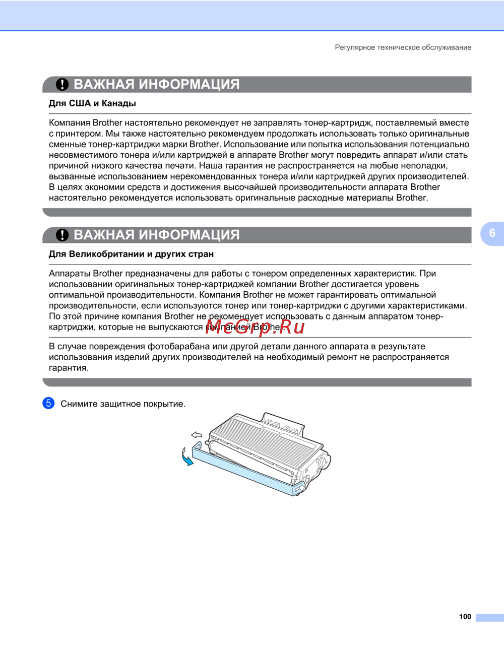 По этой причине компания Brother не рекомендует использовать с данным аппаратом тонер-