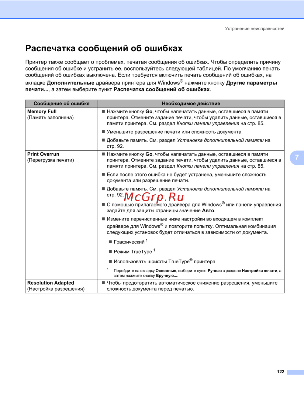 - Принтер также сообщает о проблемах печатая сообщения об ошибках чтобы определить причину сообщения об ошибке и устранить ее воспользуйтесь следующей таблицей по умолчанию печать сообщений об ошибках выключена если требуется включить печать сообщений об ошибках на вкладке дополнительные драйвера принтера для window p.132