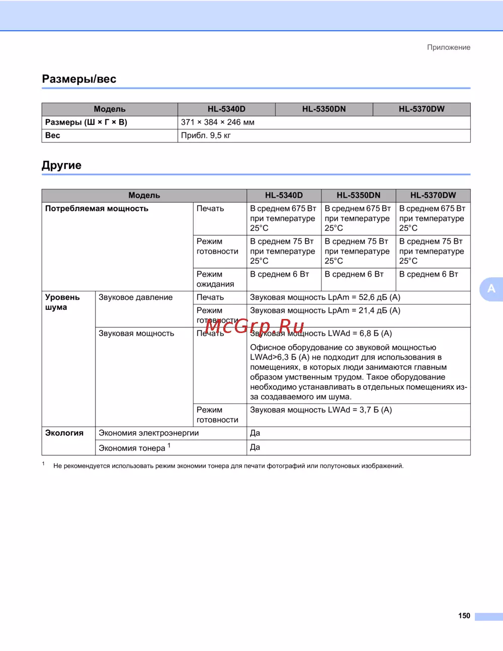 - Технические характеристики принтера p.155