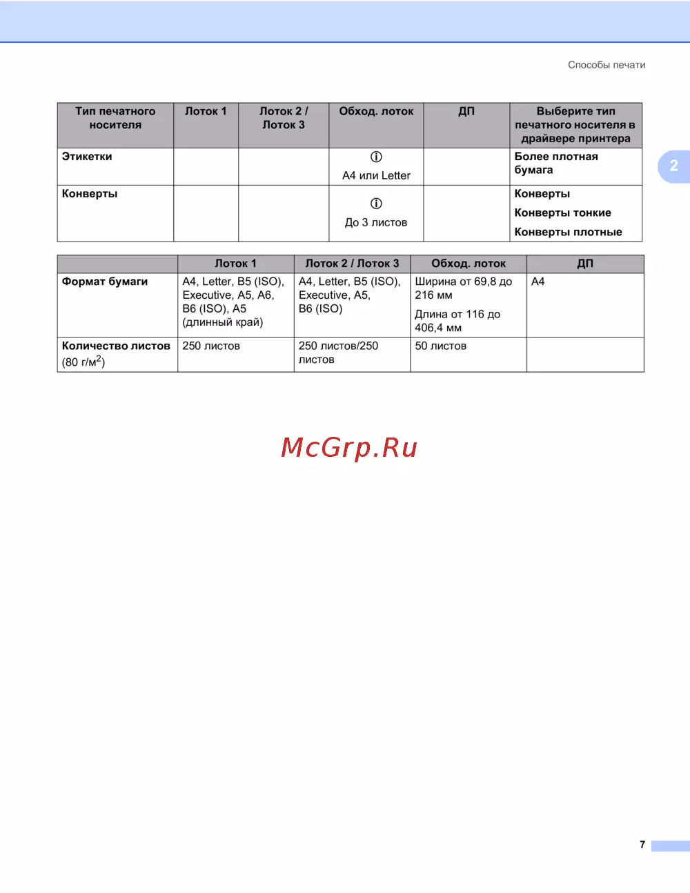 - Печать на обычной бумаге высокосортной бумаге или прозрачных пленках из лотка 1 2 или 3 p.21