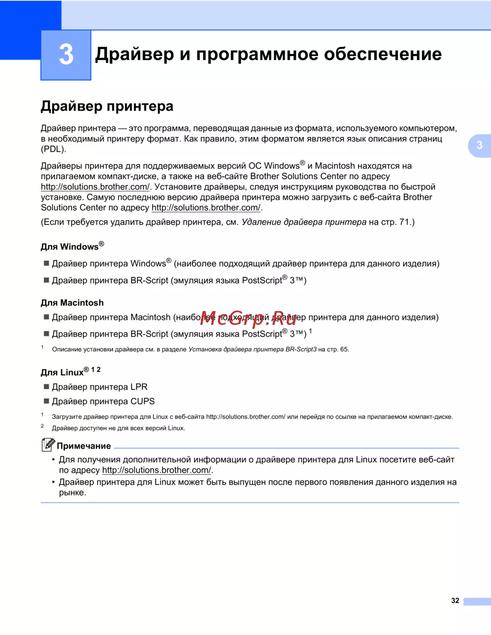 - Для загрузки последних версий обновления драйвера посетите веб сайт по адресу http solutions brother com p.161