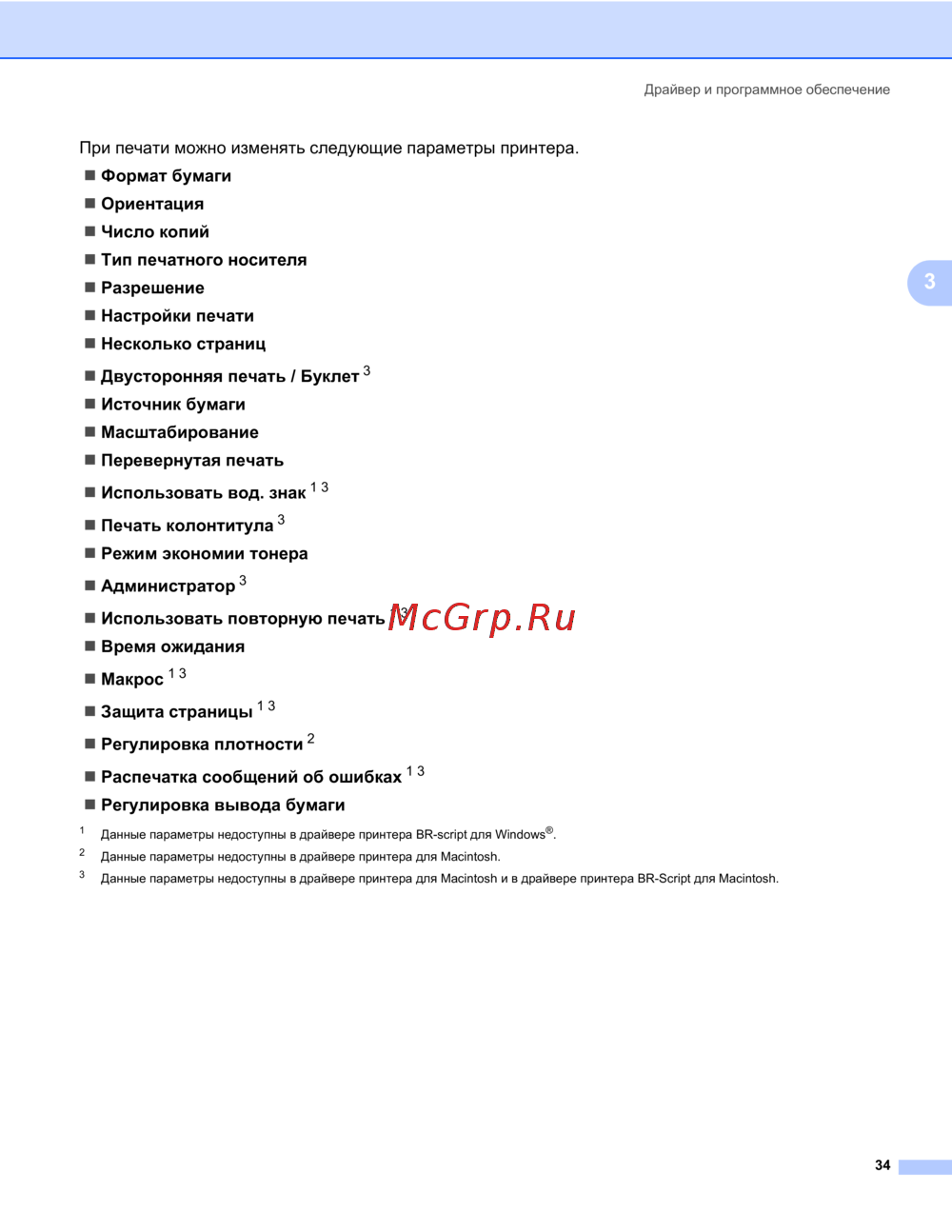 Данные параметры недоступны в драйвере принтера для Macintosh и в драйвере принтера BR-Script для Macintosh.