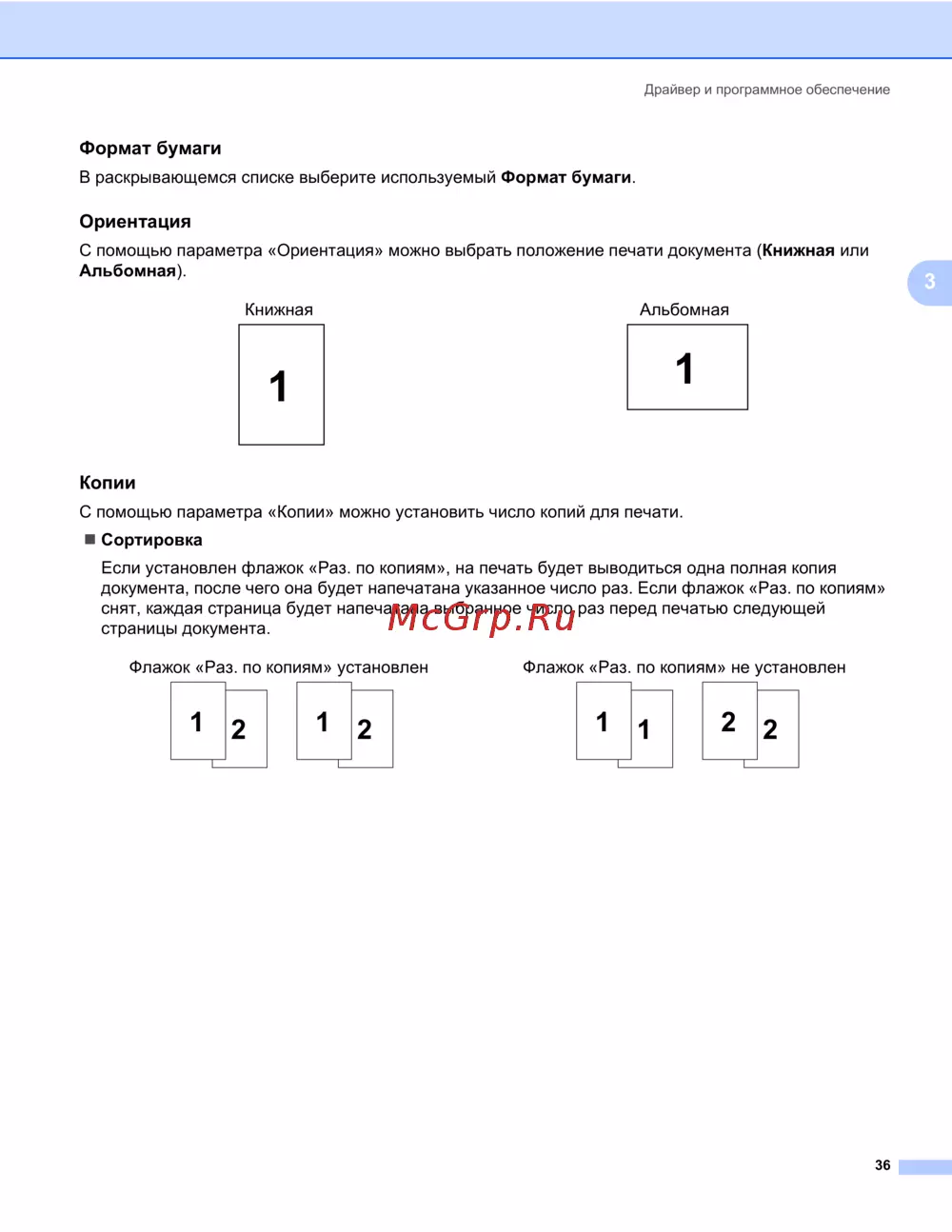 Brother HL-5340D — настройки печати: форматы, ориентация и количество копий [46/181]