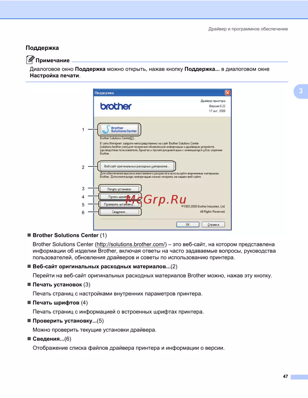 - Для загрузки последних версий обновления драйвера посетите веб сайт по адресу http solutions brother com p.161