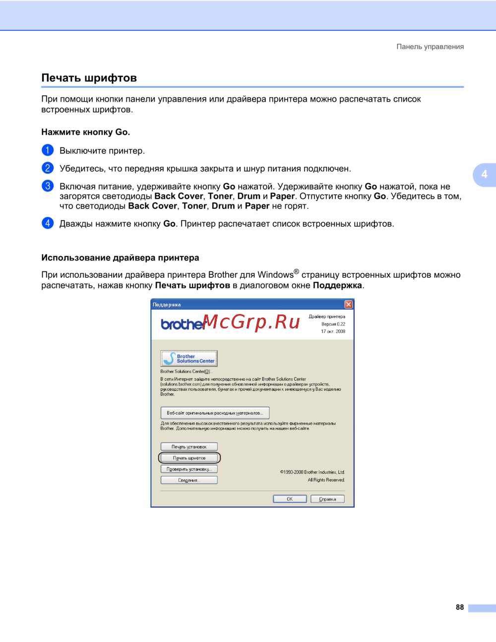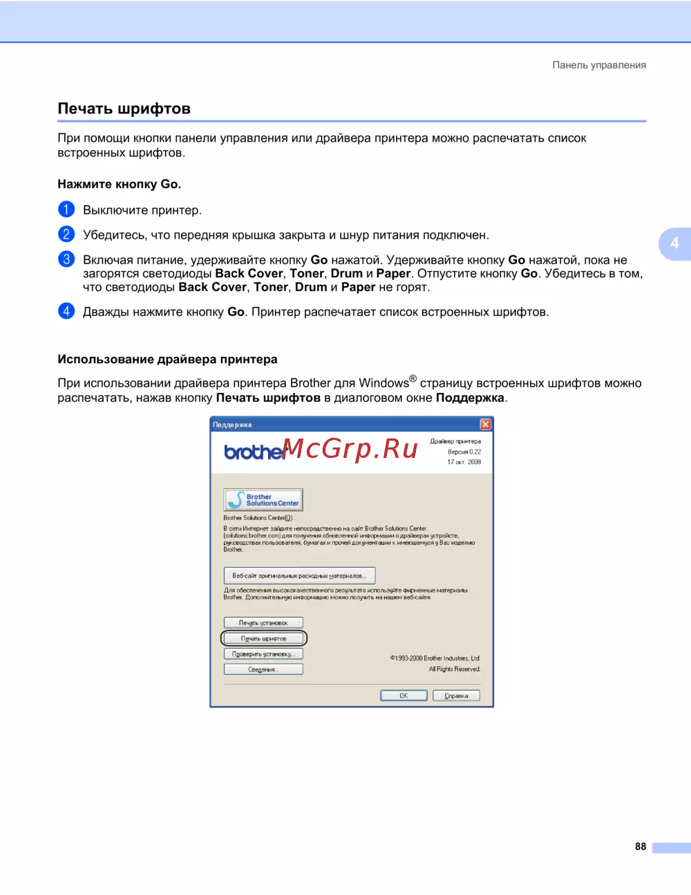 Brother HL-5340D — как распечатать список встроенных шрифтов на принтере [98/181]