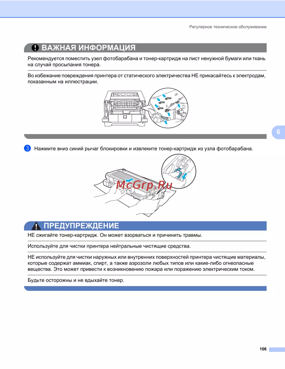 Brother HL-5350DN — рекомендации по техническому обслуживанию принтера и безопасности [116/181]