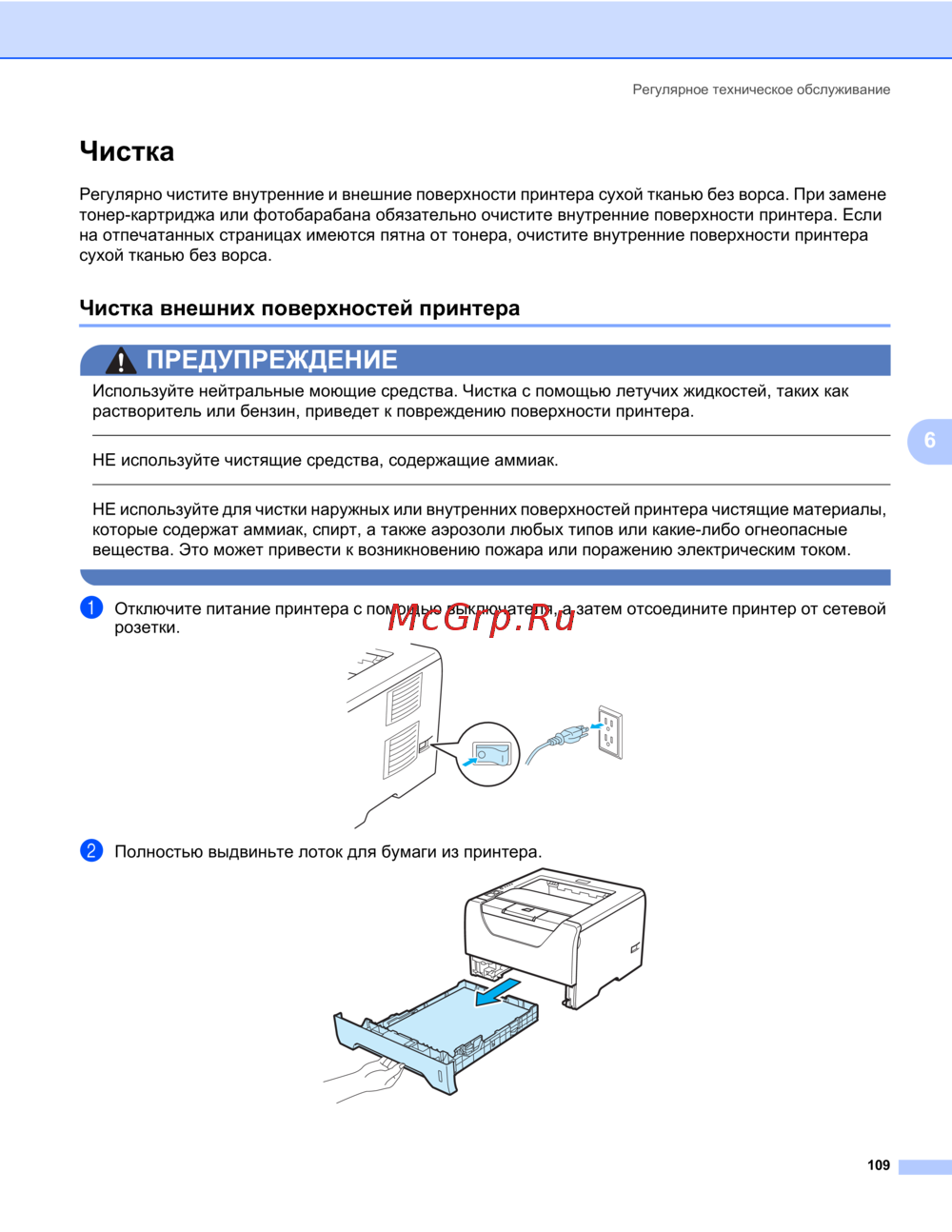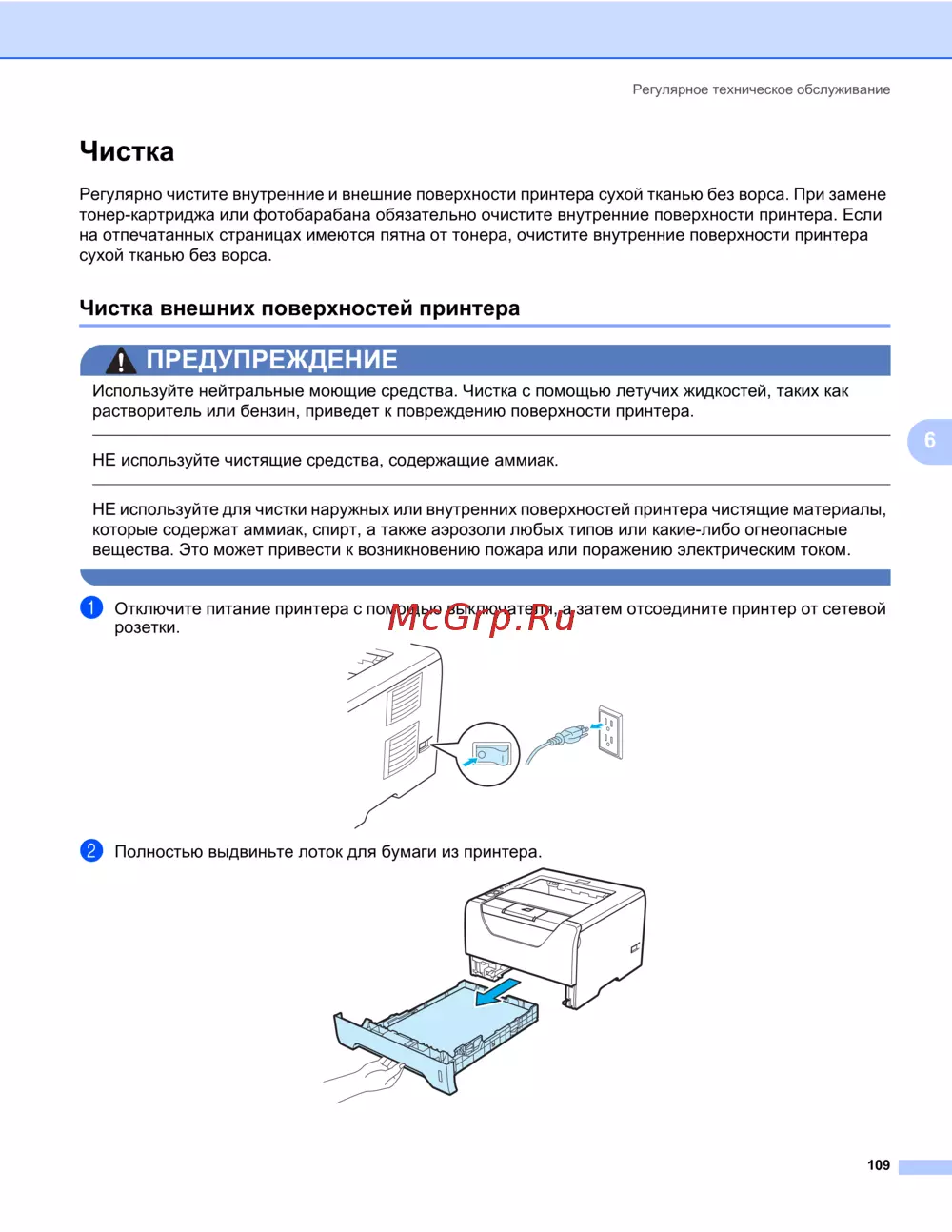 Чистка внешних поверхностей принтера 6
