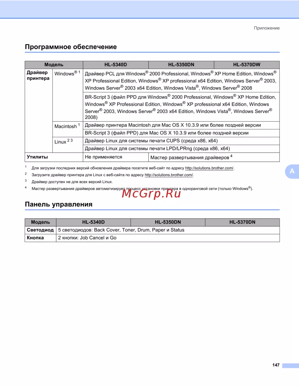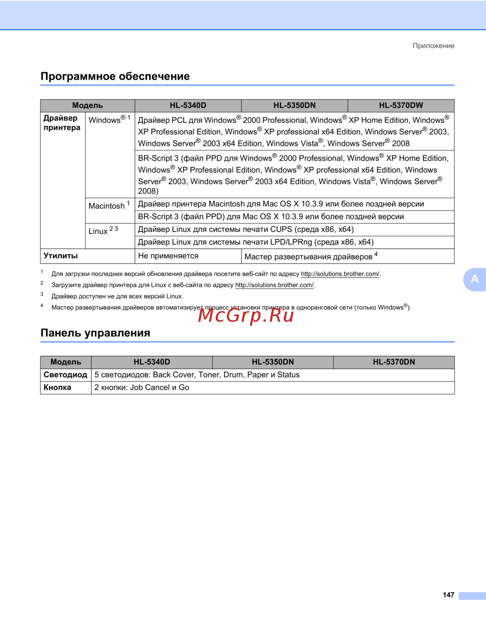Для загрузки последних версий обновления драйвера посетите веб-сайт по адресу http://solutions.brother.com/.