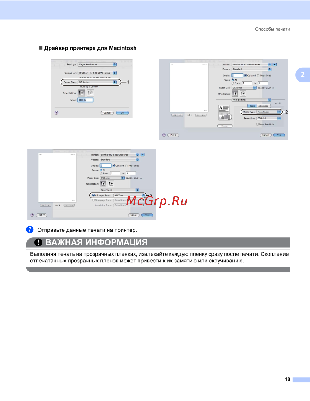 - Печать на обычной бумаге высокосортной бумаге и прозрачных пленка p.21