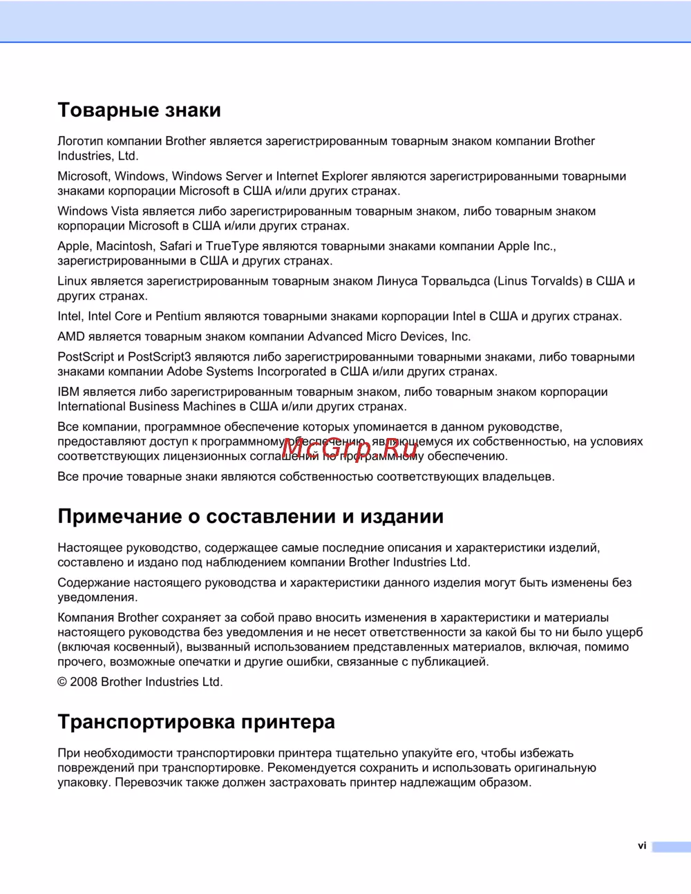 Brother HL-5370DW — информация о товарных знаках и транспортировке принтера [7/181]