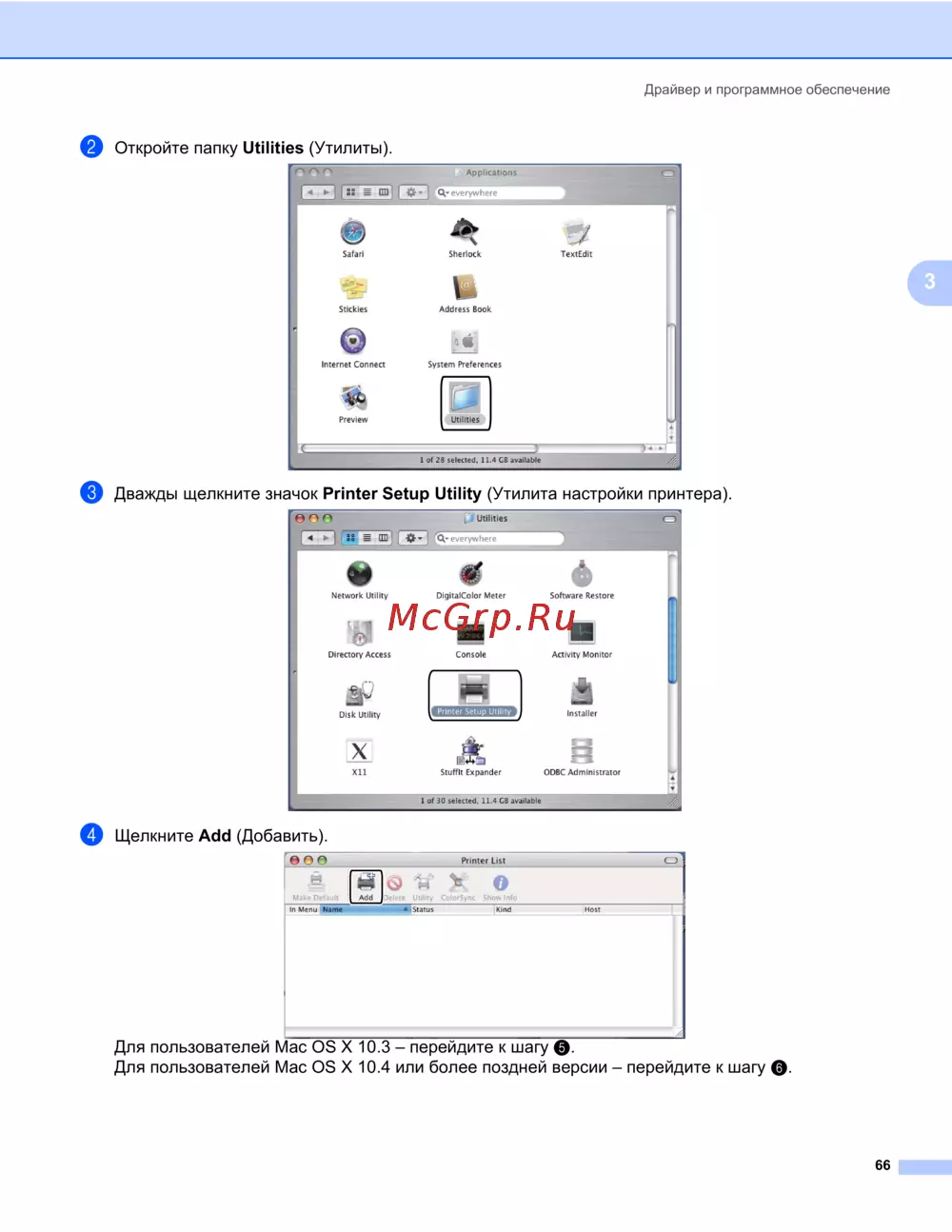 Для пользователей Mac OS X 10.3 – перейдите к шагу e.