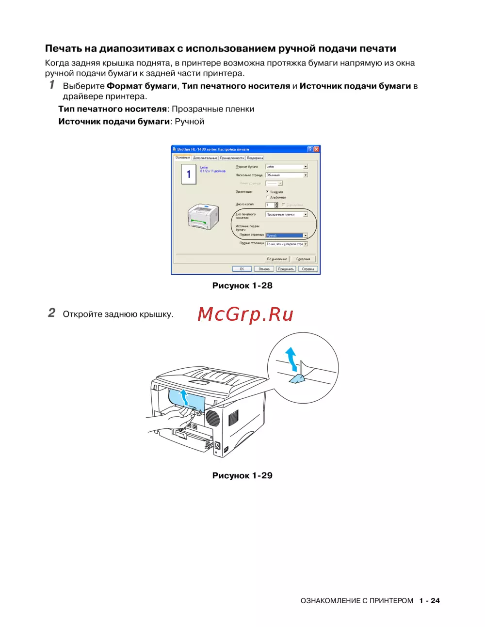 Brother HL-1430 [35/94] Печать на диапозитивах с использованием ручной подачи печати