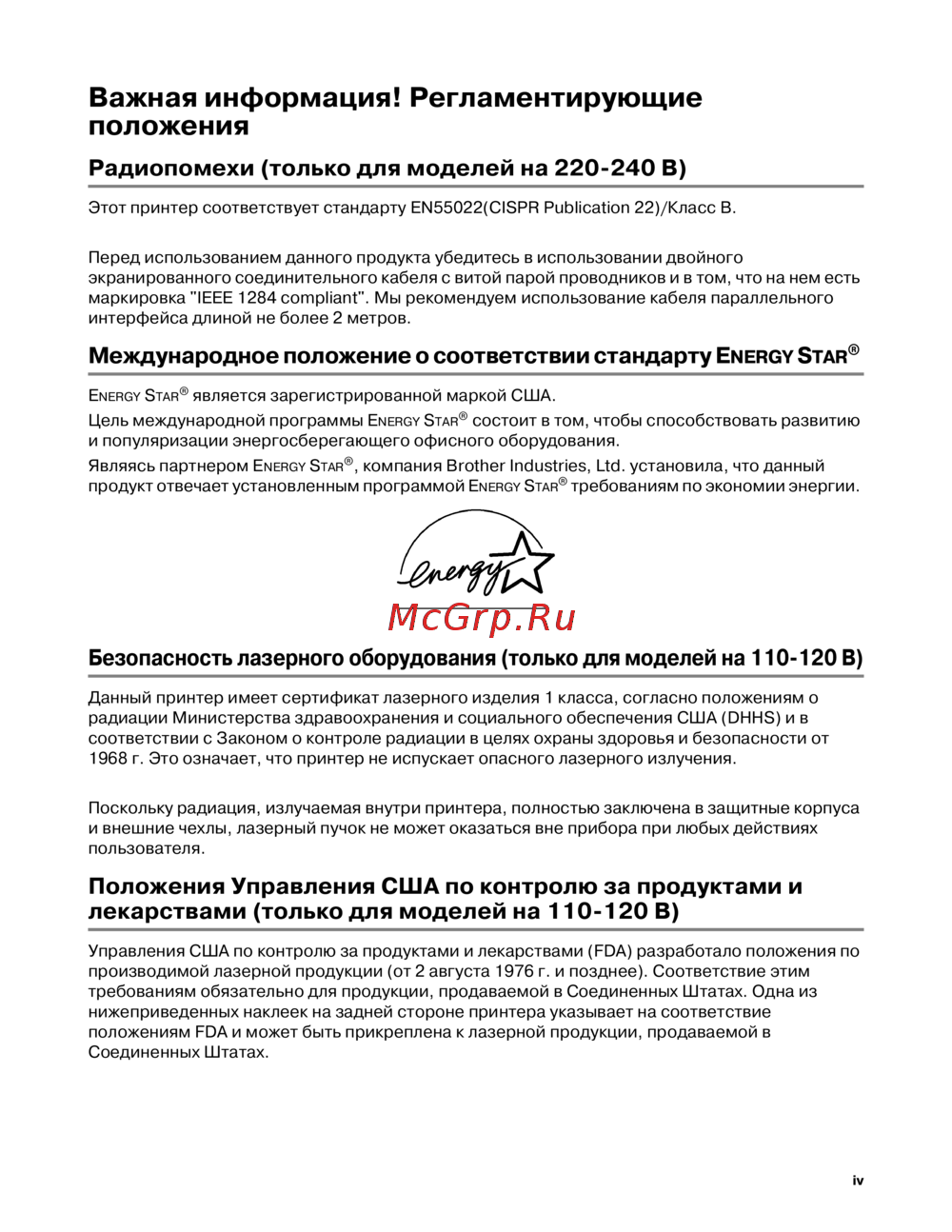 ![Brother HL-1430 [5/94] Важная информация регламентирующие положения](/views2/1025085/page5/bg5.png)