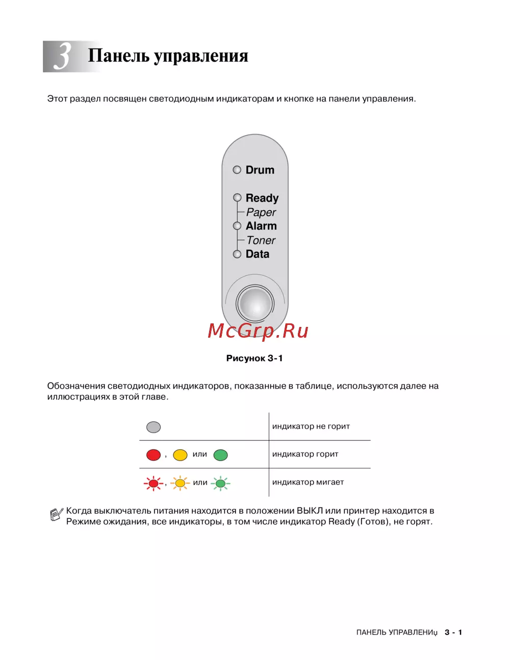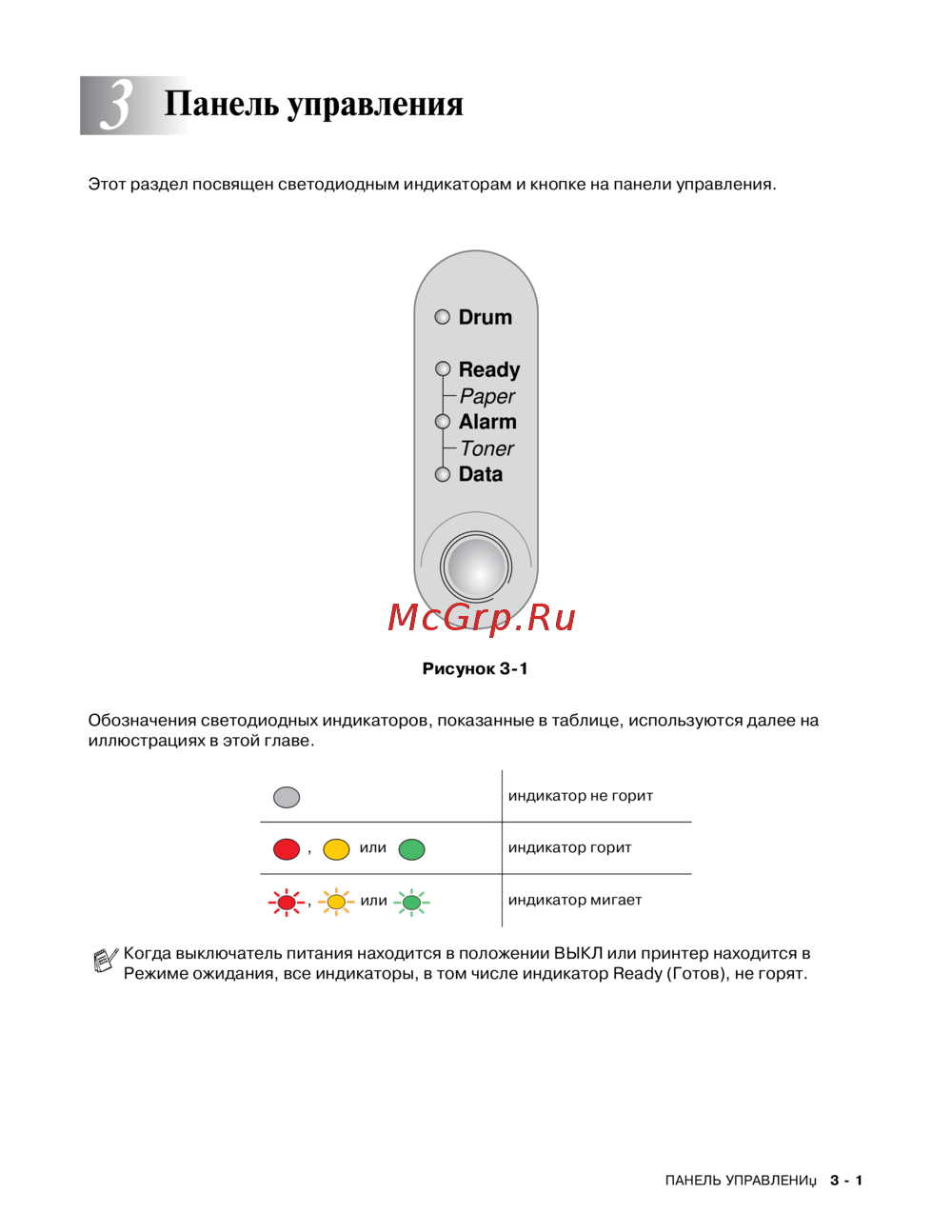 Brother HL-1430 — светодиодные индикаторы и кнопка панели управления [53/94]
