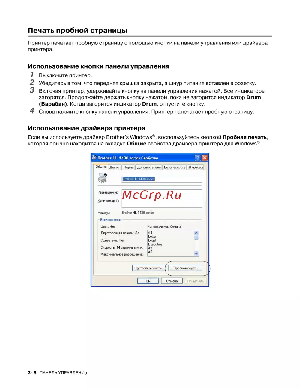 Brother HL-1430 — как напечатать пробную страницу с помощью принтера [60/94]