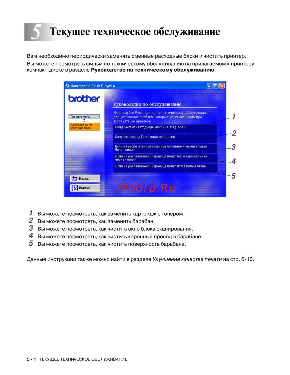 Вы можете посмотреть фильм по техническому обслуживанию на прилагаемом к принтеру