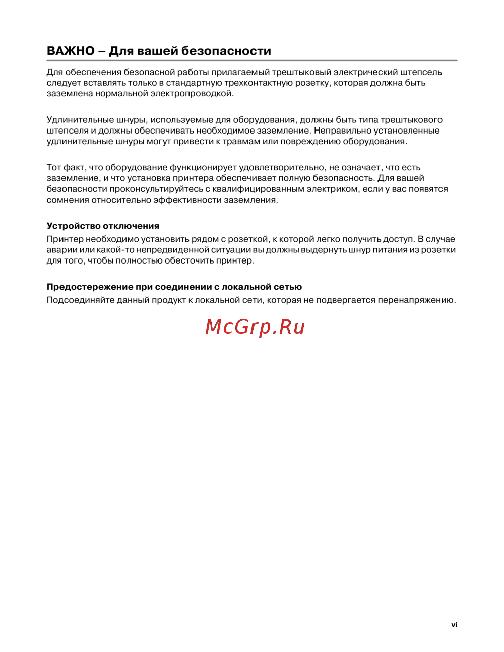 заземление, и что установка принтера обеспечивает полную безопасность. Для вашей
