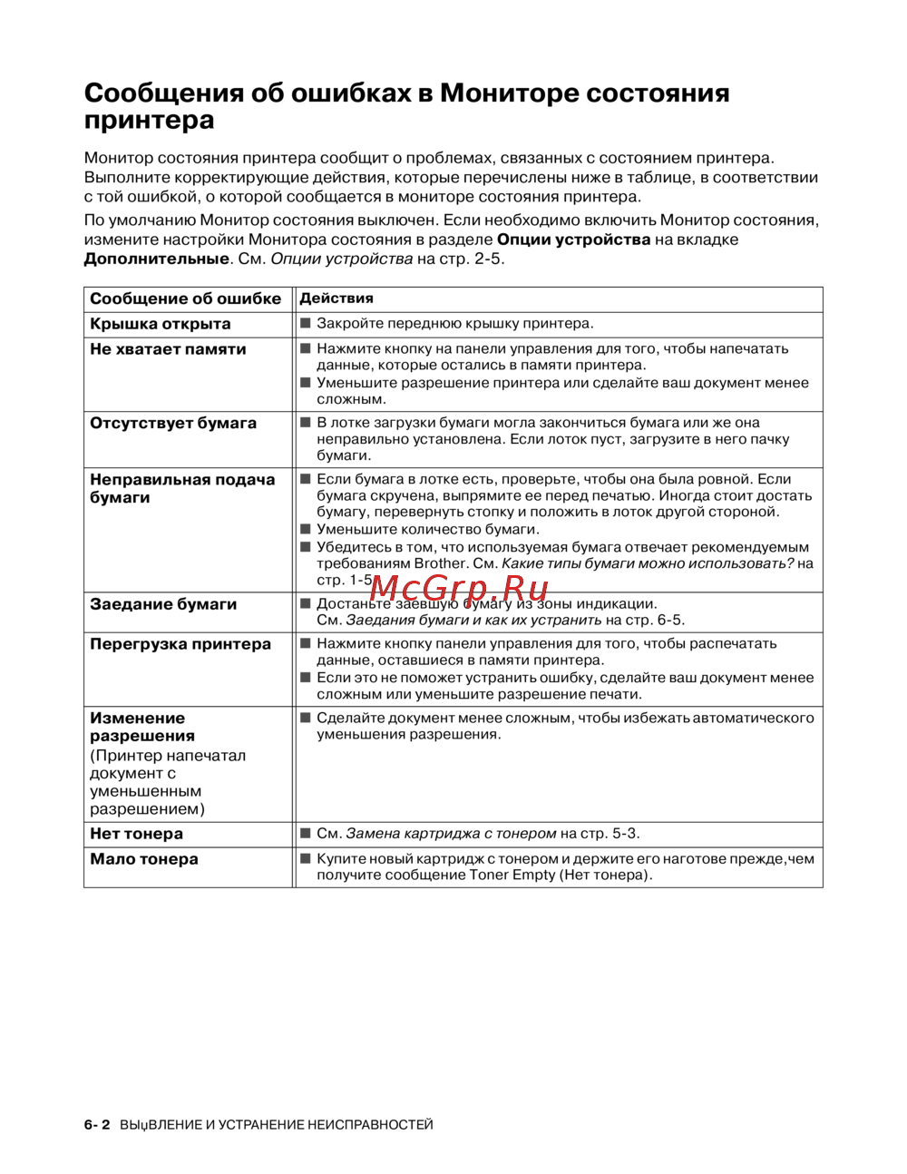 с той ошибкой, о которой сообщается в мониторе состояния принтера.