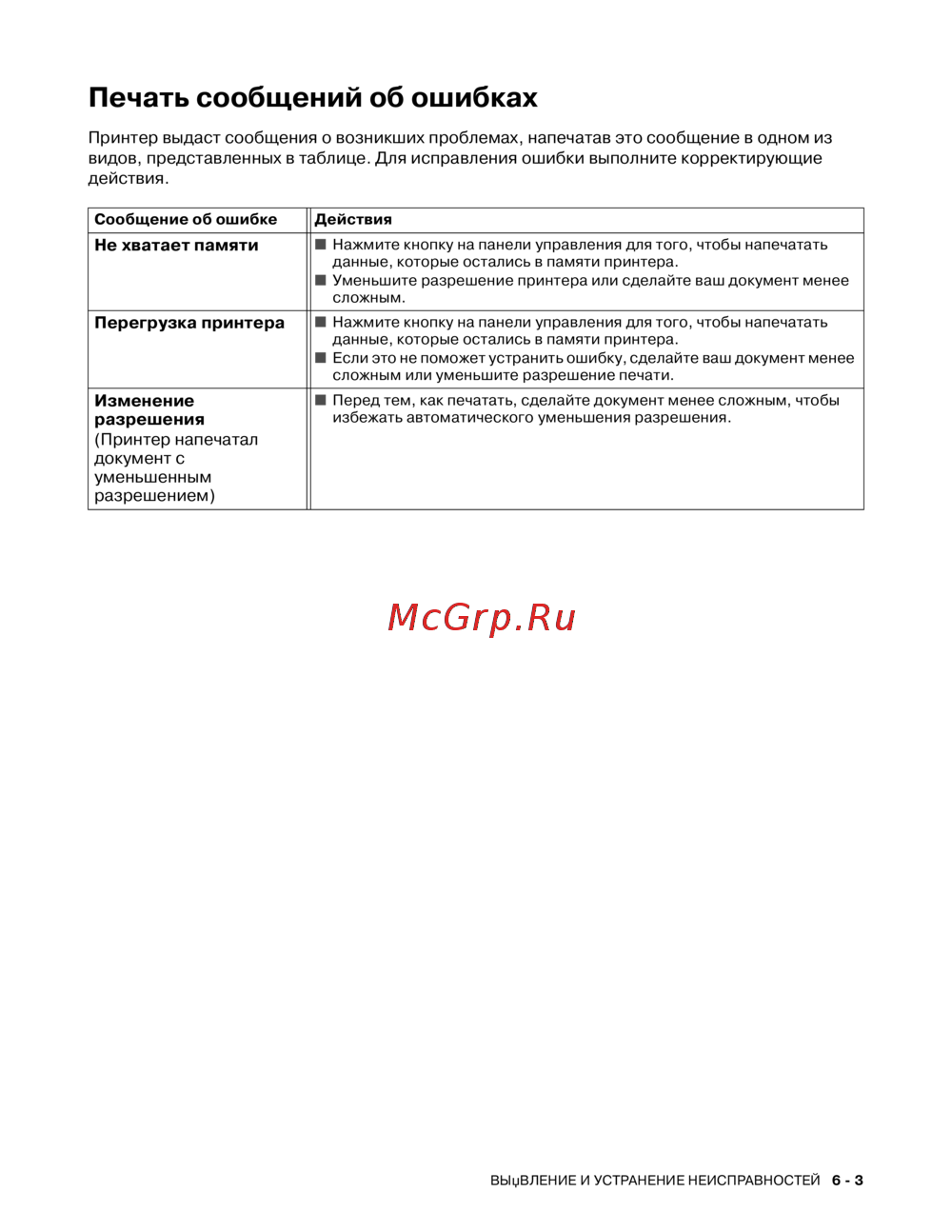 Принтер выдаст сообщения о возникших проблемах, напечатав это сообщение в одном из
