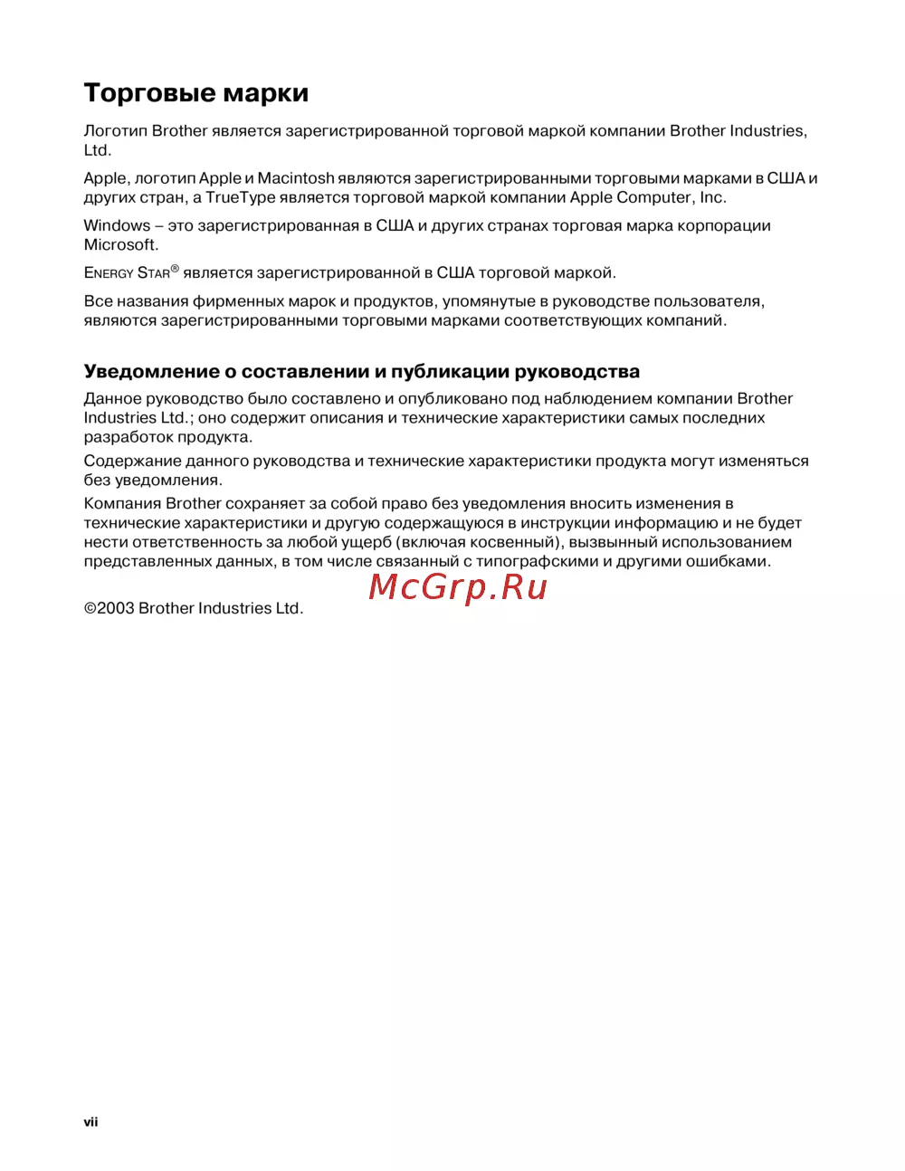Данное руководство было составлено и опубликовано под наблюдением компании Brother