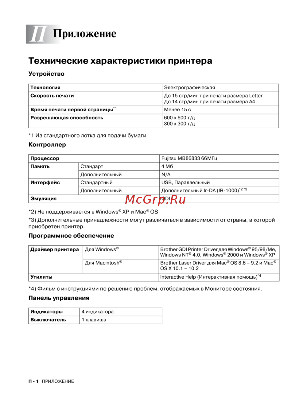 Brother HL-1430 — технические характеристики принтера: скорость, разрешение и интерфейсы [90/94]