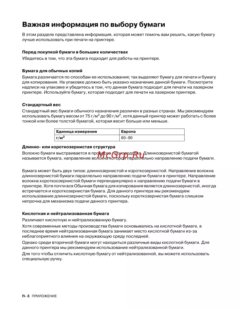 встречается и короткозернистая бумага. Для данного принтера мы рекомендуем