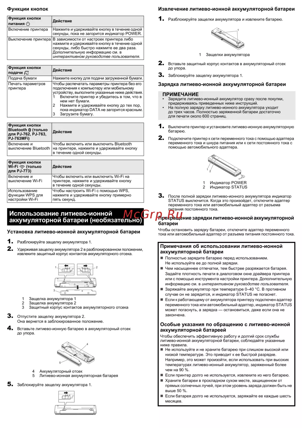 - Подключение по bluetooth только для pj 762 pj 763 pj 763mfi p.3