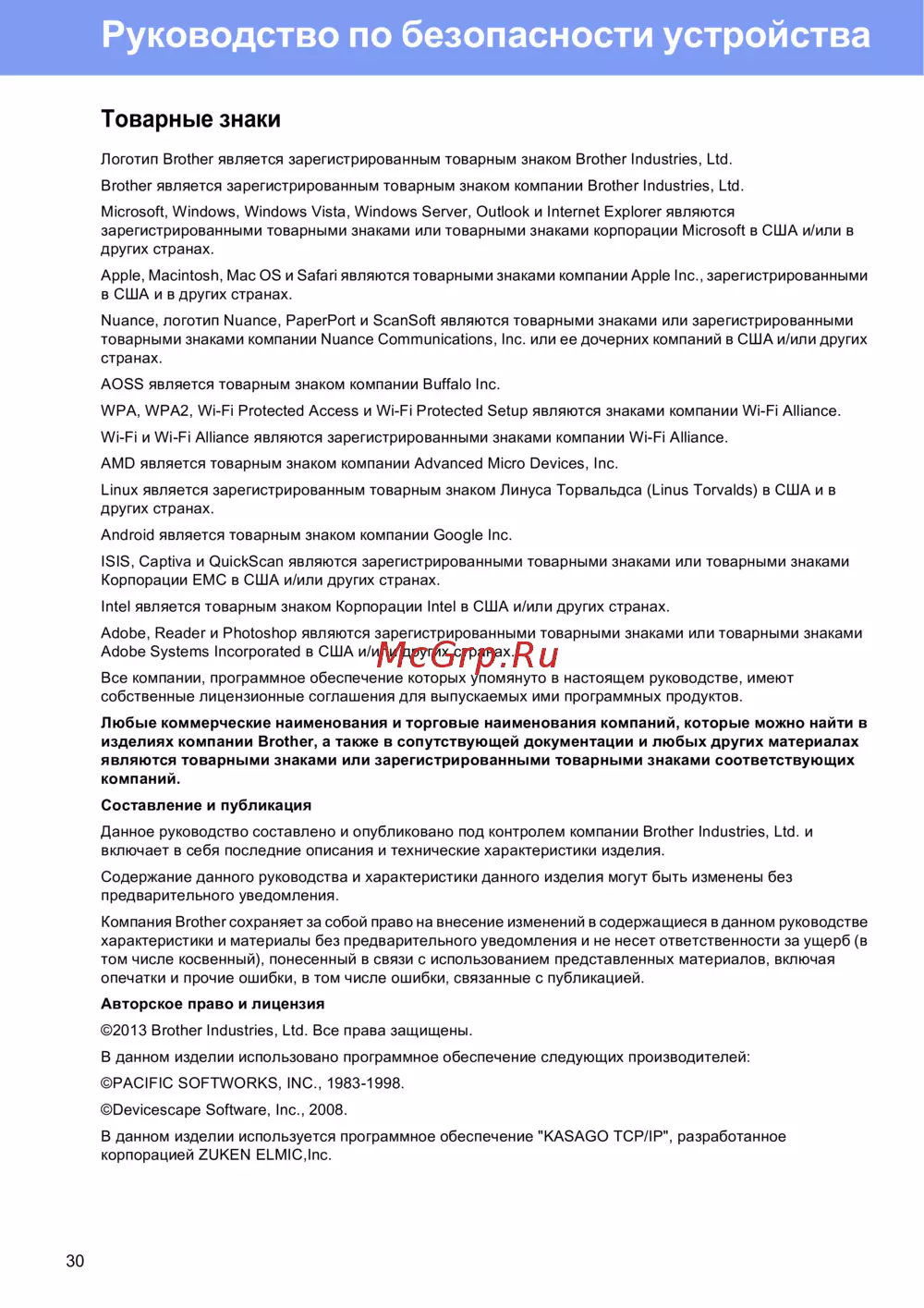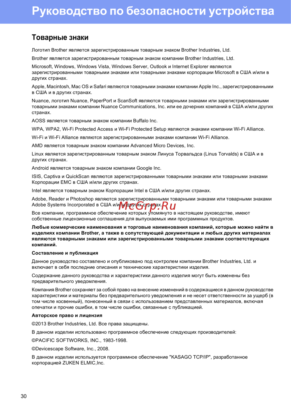 Brother ADS-1100W — руководство по безопасности устройств и товарным знакам [30/37]
