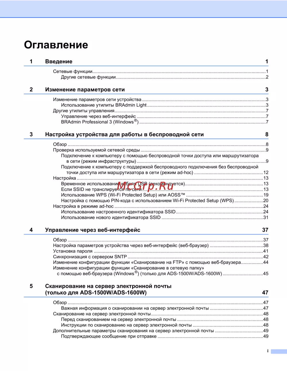 - Сканирование на сервер электронной почты только для ads 1500w ads 1600w p.5