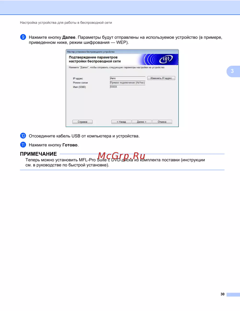 Теперь можно установить MFL-Pro Suite с DVD-диска из комплекта поставки (инструкции