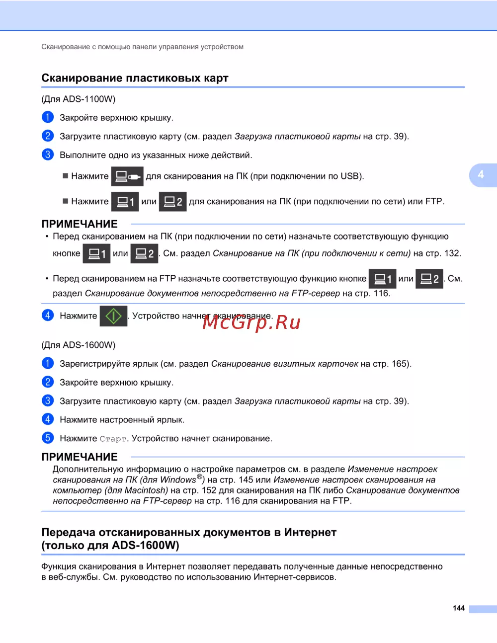 или . См. раздел Сканирование на ПК (при подключении к сети) на стр. 132.
