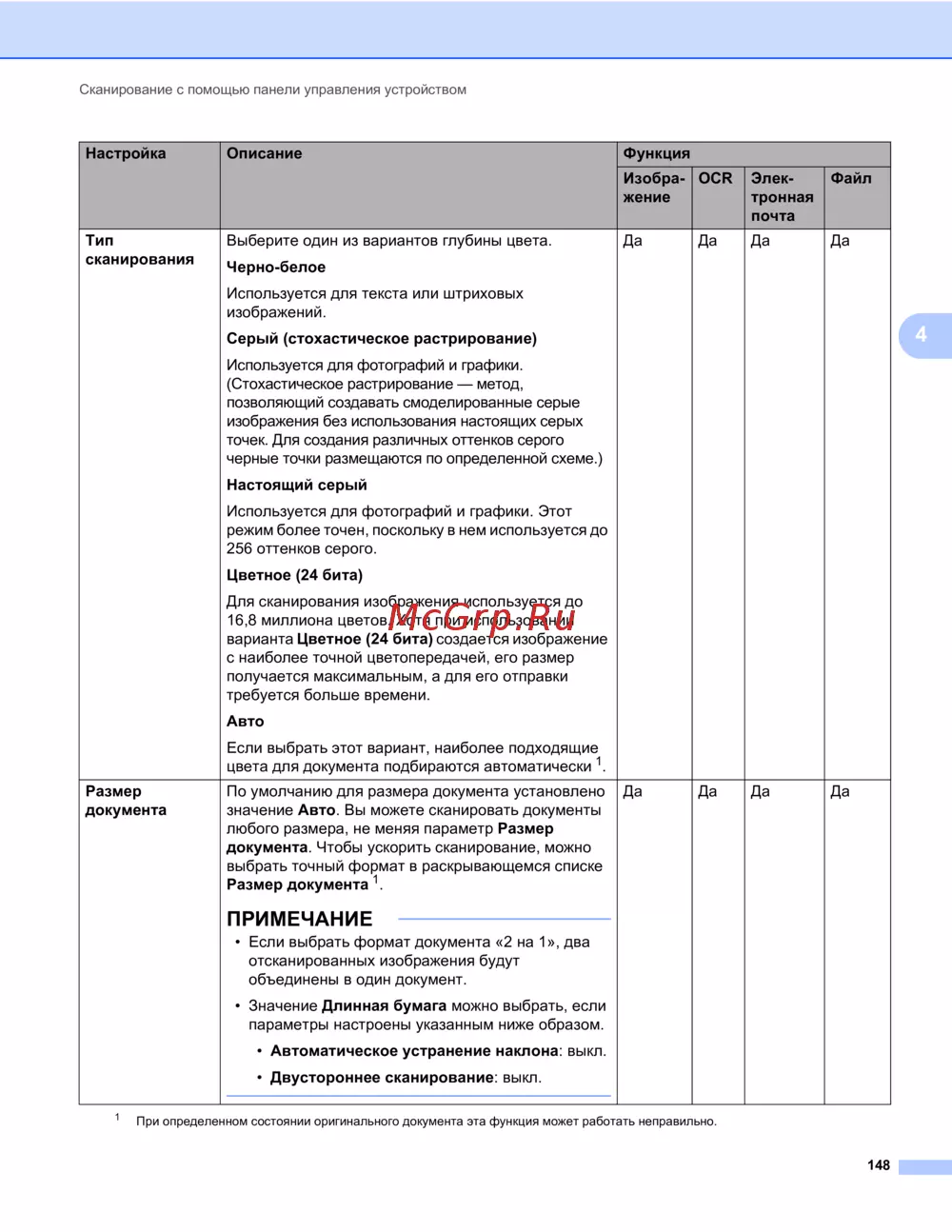 При определенном состоянии оригинального документа эта функция может работать неправильно.