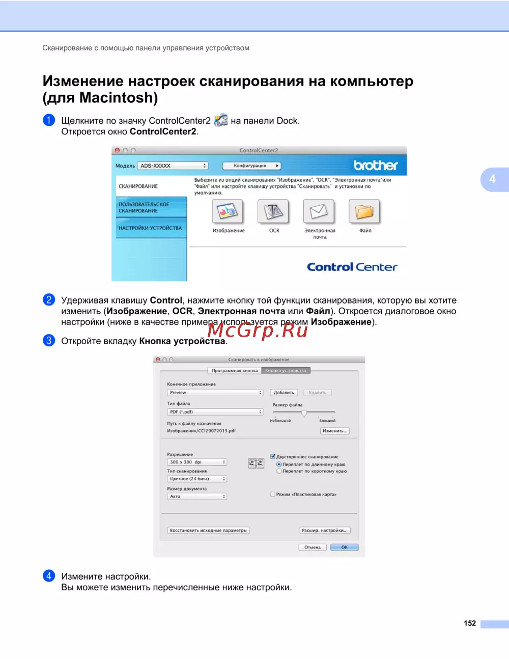 Brother ADS-1100W [166/252] Изменение настроек сканирования на компьютер для macintosh