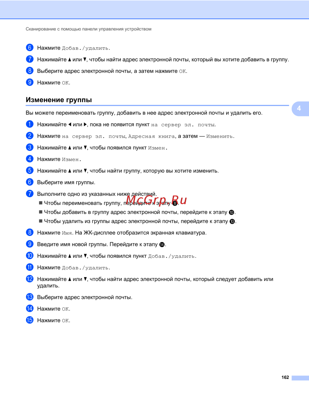 Чтобы удалить из группы адрес электронной почты, перейдите к этапу 0.