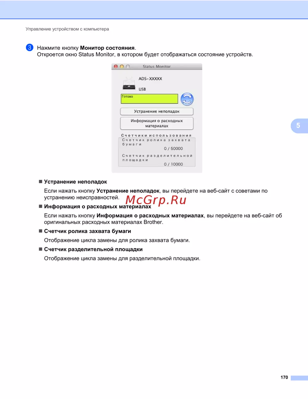 Brother ADS-1100W — управление устройством с компьютера: мониторинг и устранение неполадок [184/252]