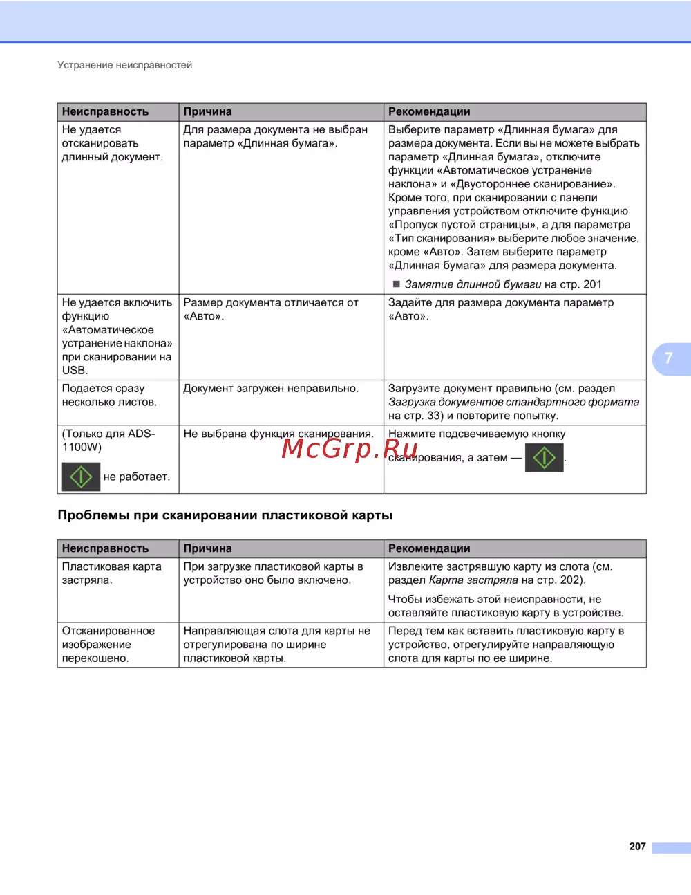 Brother ADS-1100W [221/252] Проблемы при сканировании пластиковой карты