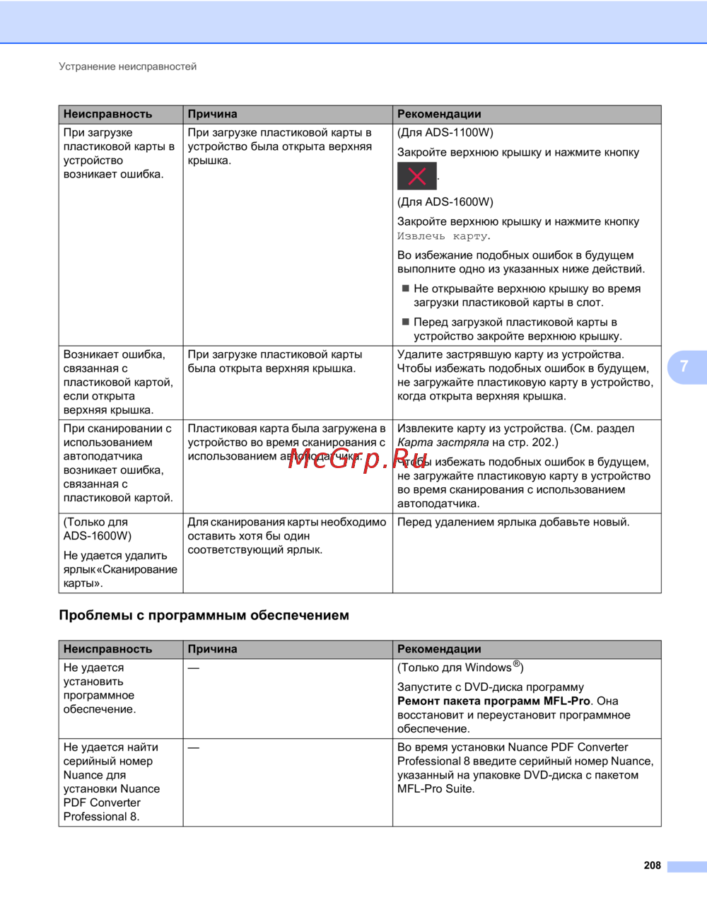 Brother ADS-1100W [222/252] Проблемы с программным обеспечением