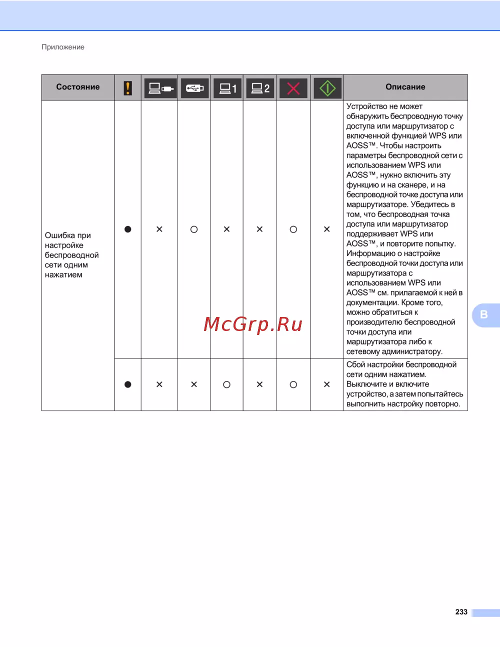 - Ошибка при настройке беспроводной сети одним нажатием p.247