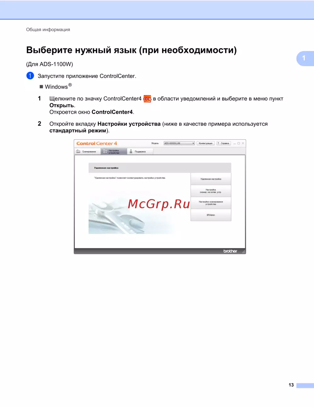 Brother ADS-1100W [27/252] Выберите нужный язык при необходимости