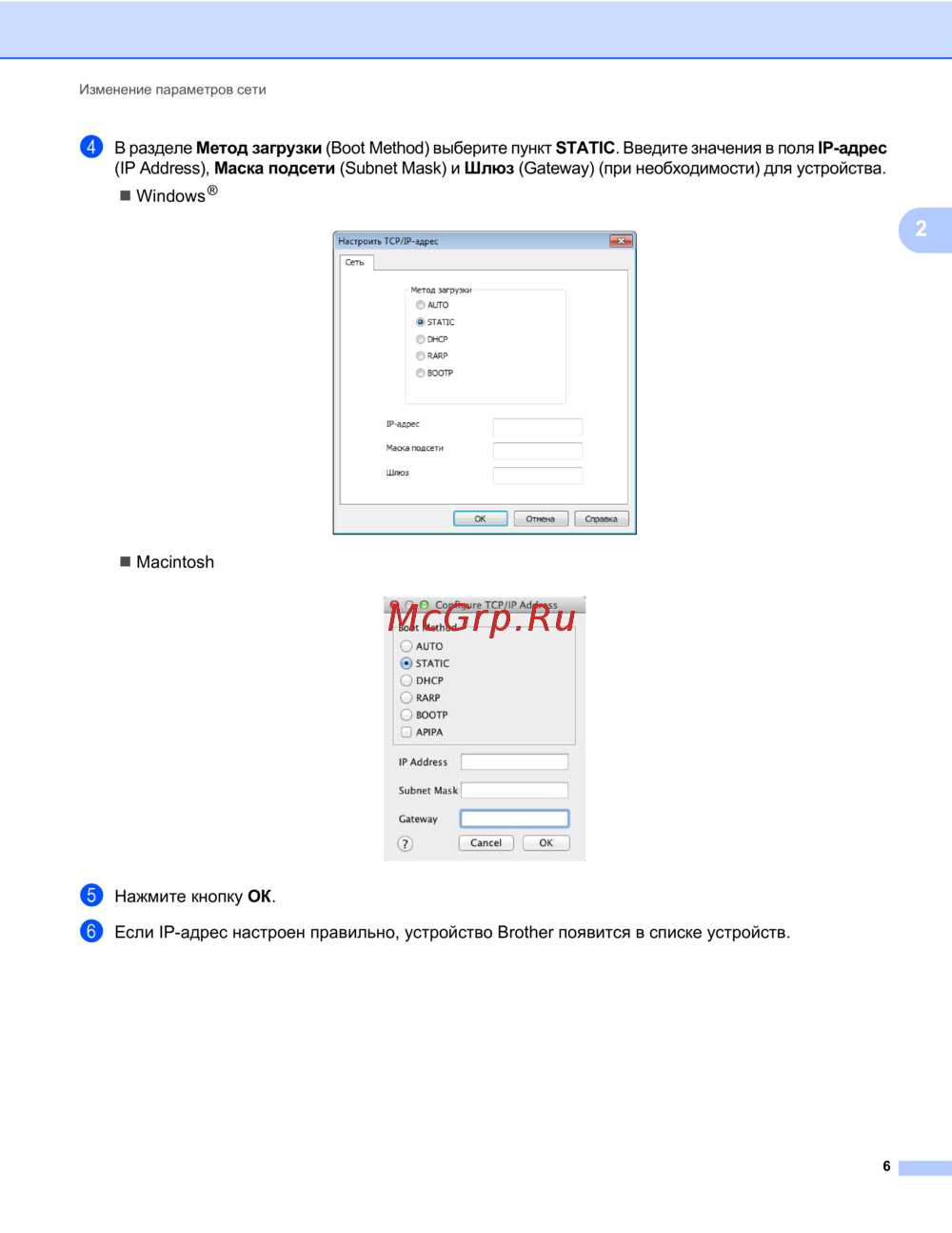 - Настройка ip адреса маски подсети и шлюза с помощью утилиты bradmin light p.7