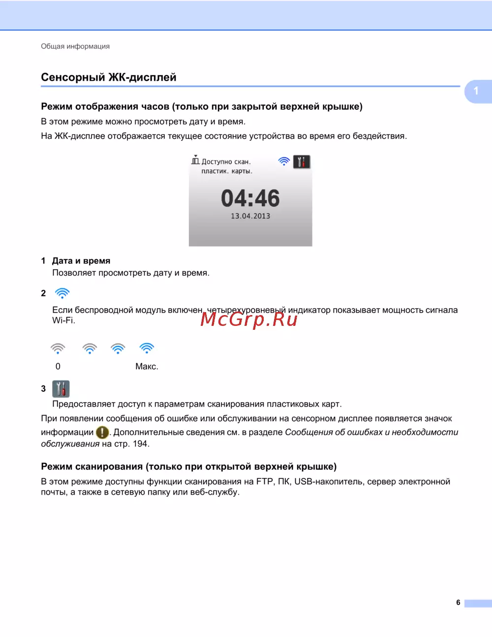 Узнайте о функциях ЖК-дисплея устройства: режим отображения часов, сканирования, индикаторы Wi-Fi и работа с параметрами. Подробности использования и сообщения об ошибках.