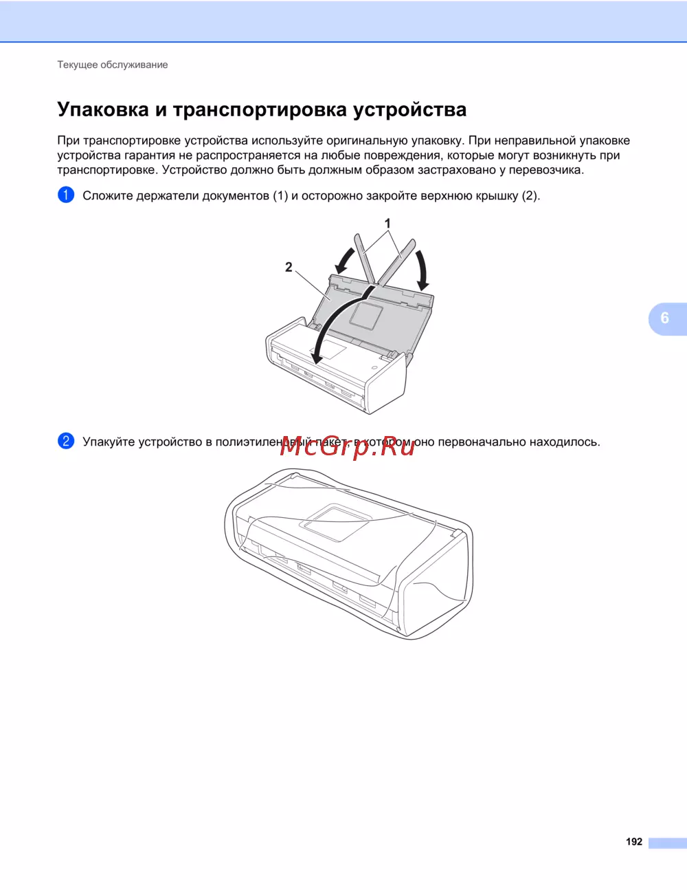 Brother ADS-1600W [206/252] Упаковка и транспортировка устройства